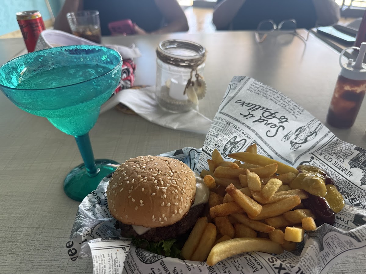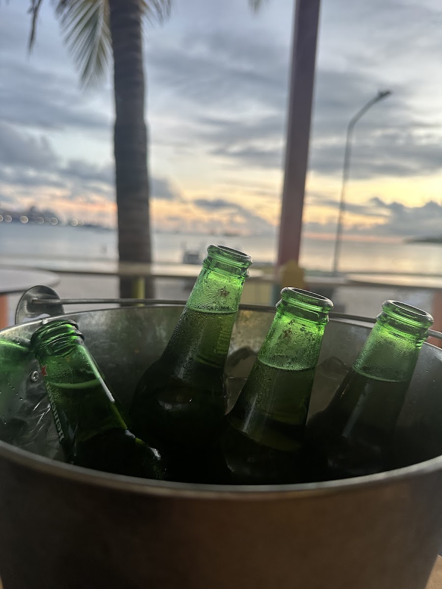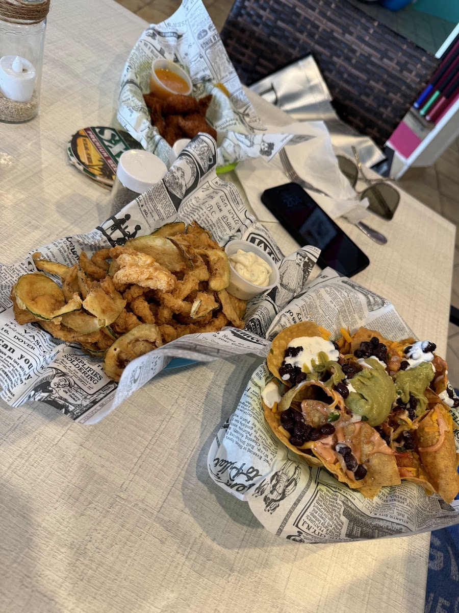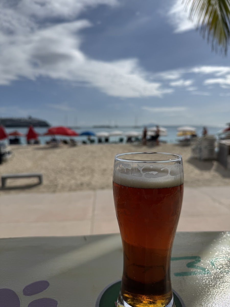 Great food and SXM beers, margaritas on the rocks and atmosphere! We had the Jerk chicken nachos and they were fantastic!! Would definitely recommend this place on great bay beach! Short walk from cruise port! Tell them Tom from T.O. sent you!